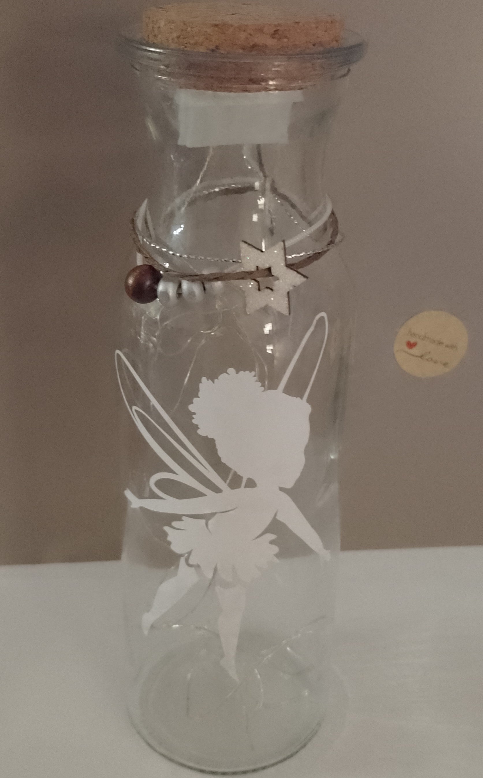 Flasche mit Korkdeckel Weihnachtsmotiv Elfe beleuchtet