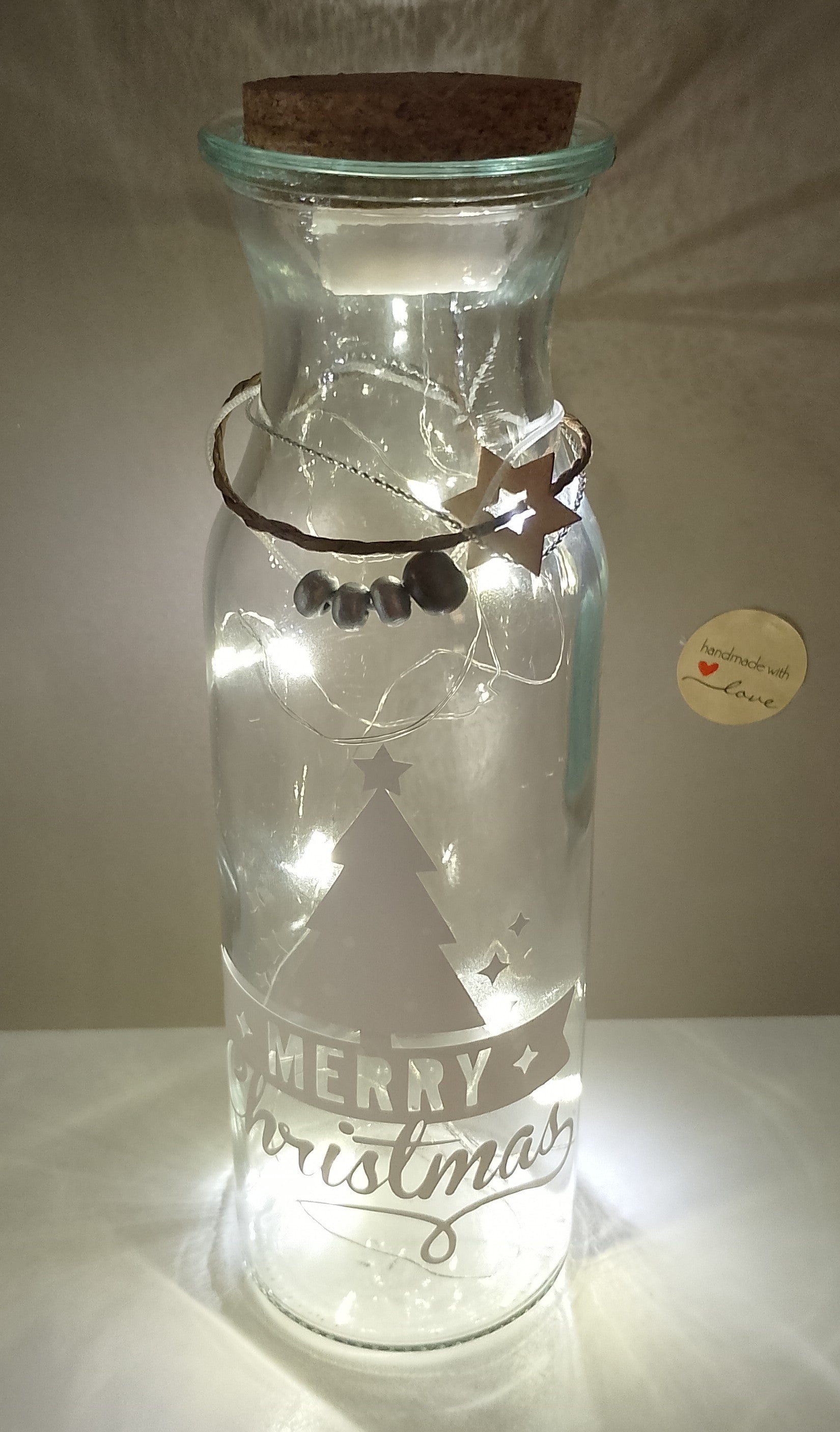 Du liebst die weihnachtliche Beleuchtung in der dunklen, kalten Jahreszeit? Dann findet unsere dekorative Flasche mit Korkdeckel bestimmt noch einen schönen Platz bei Dir.